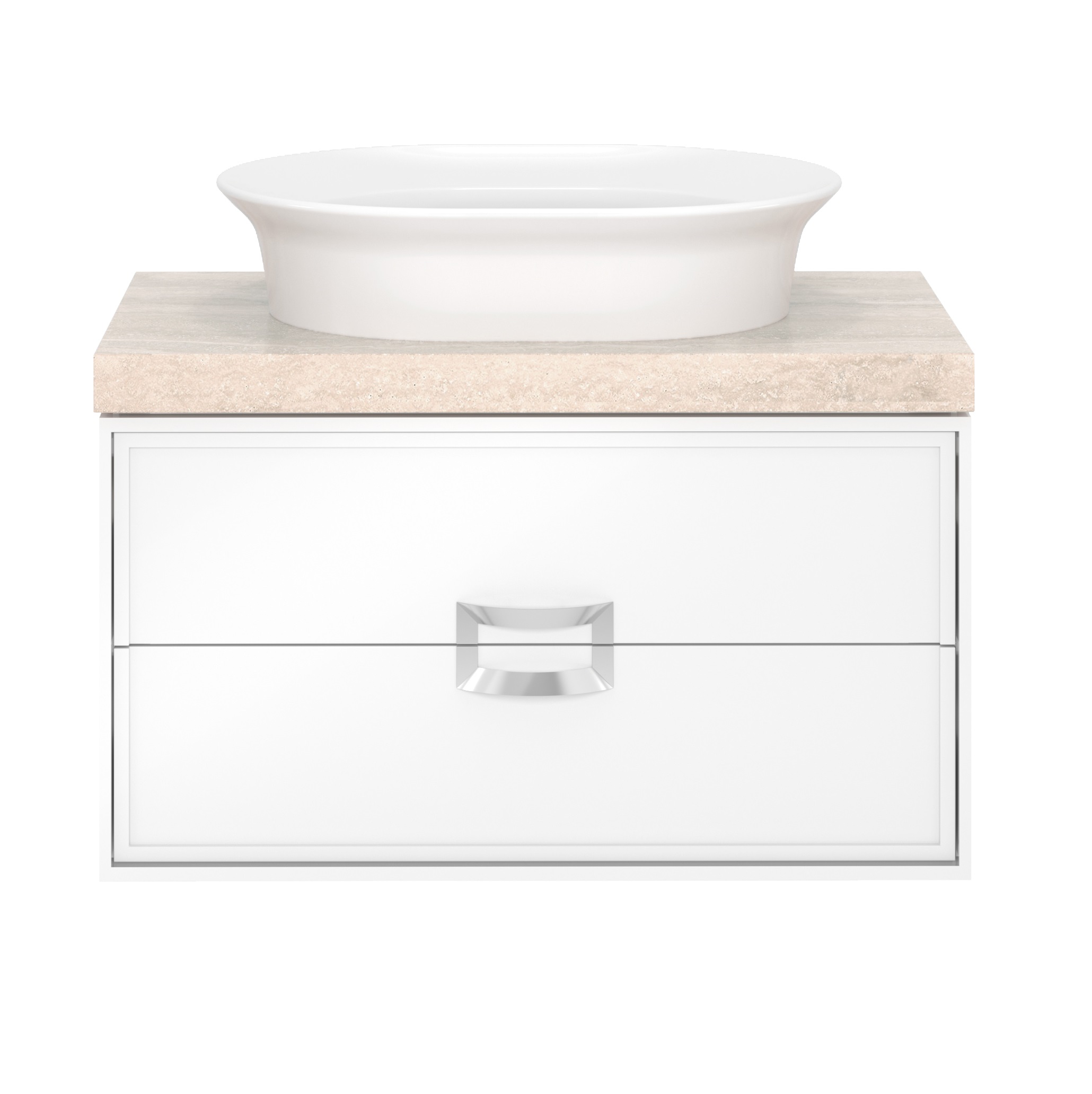 Белая матовая подвесная тумба с двумя выдвижными ящиками. Ящики закрываются плавно и бесшумно. Для тумбы предусмотрена керамическая столешница с эффектом необработанного или полированного камня. Сочетается с накладными раковинами CANALETTO и BUONGIORNO. Изделия из ДСП, МДФ, а также изделия из металла требуют правильного ухода и эксплуатации. При установке и дальнейшей эксплуатации изделий, следует обратить внимание на их расположение в ванной комнате: они должны быть установлены вдали от источников тепла; температура воздуха в помещении должна быть в пределах +2 — +25 °С, а влажность воздуха не должна превышать 45%-70%. Во избежание появления пятен, отслоения облицовки и коррозии металла, не допускать скопления воды и жидкостей на поверхностях изделий и как можно скорее протереть сухой мягкой тканью участок, контактирующий с жидкостью. Соблюдайте правила ухода за изделиями из металла и они прослужат Вам очень долго.